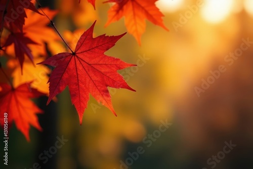 Blurry autumn maple leaves, warm light, bokeh Year end promotion banner , promotion, october, template
