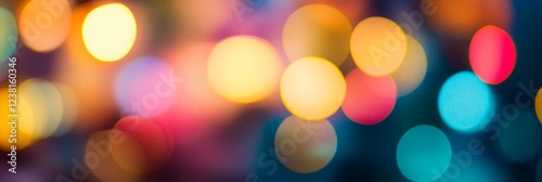 Blurry bokeh lights with vibrant colors on dark background Concept: festive atmosphere, colorful lighting, celebration, soft focus, urban nightlife