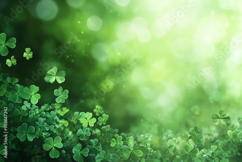 Blurry green clover leaves creating a festive background for stpatrick s day celebration