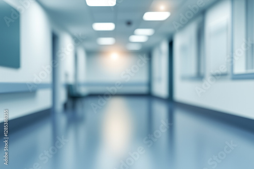 Blurry Perspective of a Hospital Corridor with Soft Lighting and Clean, Modern Design