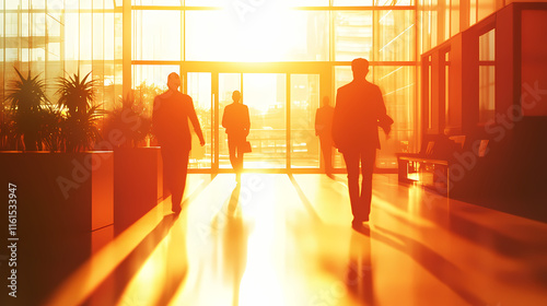 Blurry silhouettes of people in a sunny room. Solarian. Illustration