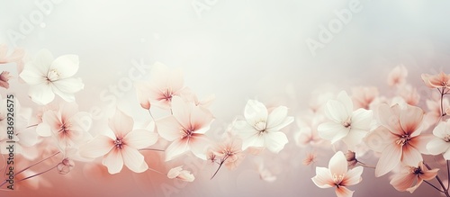 Blurry soft-colored flowers on mulberry paper background with ample copy space image.
