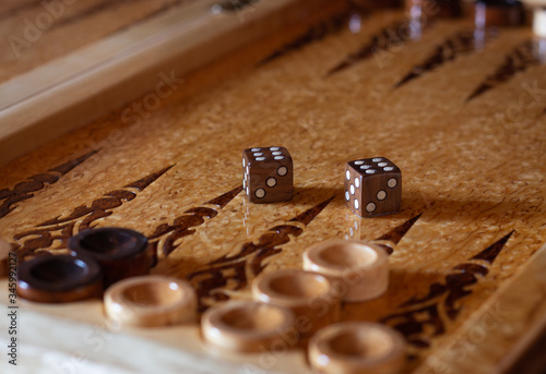Board games of backgammon. Details of the board and checkers. Tawla. The ancient game of the East and Asia. Relax and have fun with your friends. Without people