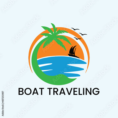 boat traveling logo design vector