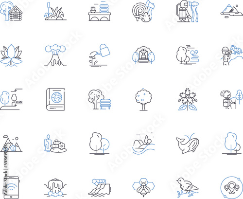 Boating sailing line icons collection. Anchorage, Buoyancy, Captain, Catamaran, Cruise, Docks, Fenders vector and linear illustration. Ferry,Flotilla,Galley outline signs set Generative AI