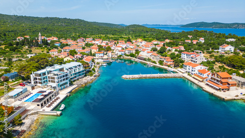 Božava (Bozava) is a charming village located on Dugi Otok, Croatia, perfect for a serene summer getaway captured by drone