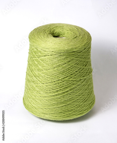 bobbin of yarn on a white background. Side view.Textile reel on isolated white background.