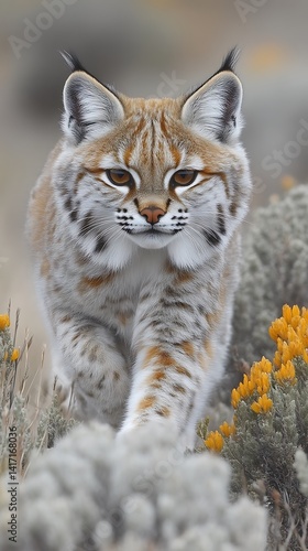 Bobcat Walking Confidently Through Meadow Hunting for Prey in Wilderness