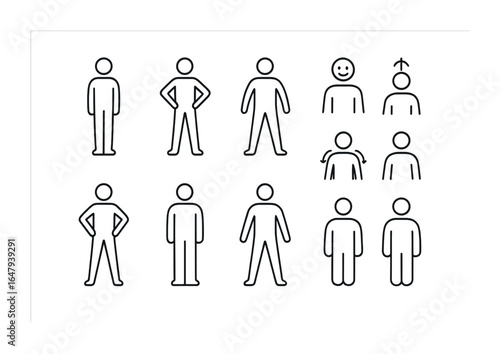 Body Language Icons. Outline vector icons of body language and posture: straight back, arms on hips, firm