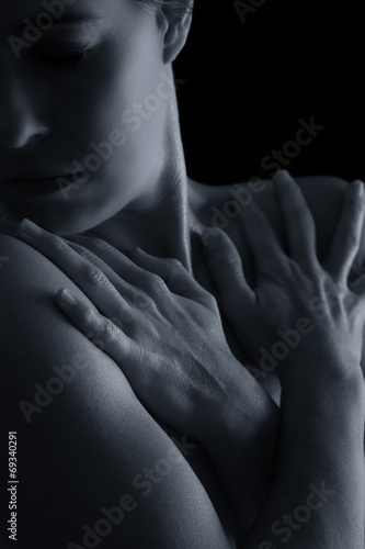 Body scape of woman neck and hand emotion artistic conversion