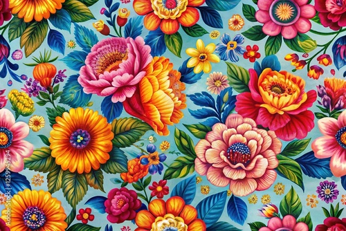 Bohemian Floral Fabric Design, Right-Aligned Flower Print on Textile Background