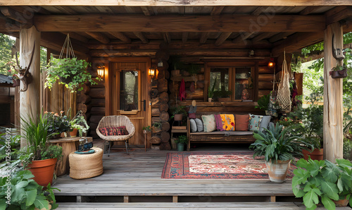 Bohemian-Style Log Cabin with a Welcoming Porch for a Cozy Escape