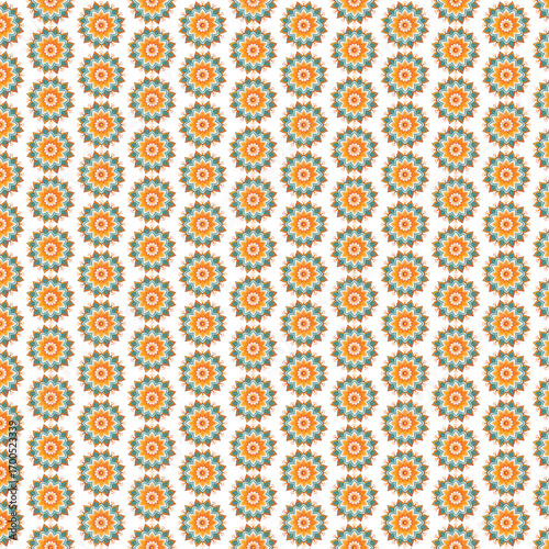 Boho Floral Seamless Pattern - Turquoise and Orange Abstract Flower Background