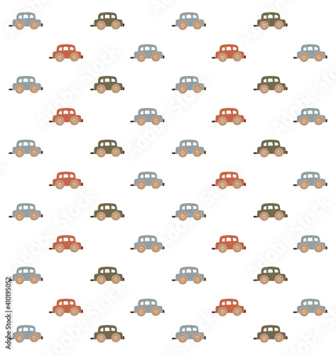 Boho seamless pattern, car print, abstract boho elements, cute minimal car for children, beautiful design, simple textute for kids, vector illustration