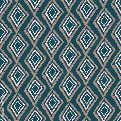 Boho vector pattern with chains of hand drawn squares and diamonds on dark blue background