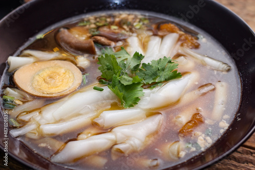 boiled Chinese pasta square, Rolled Rice Noodles or Noodle and Kuayjub Shop. what we call in thai "Kuayjub"
