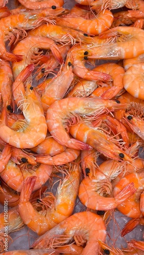 Boiled shrimp is seafood. Steamed shrimp for background. Restaurant.