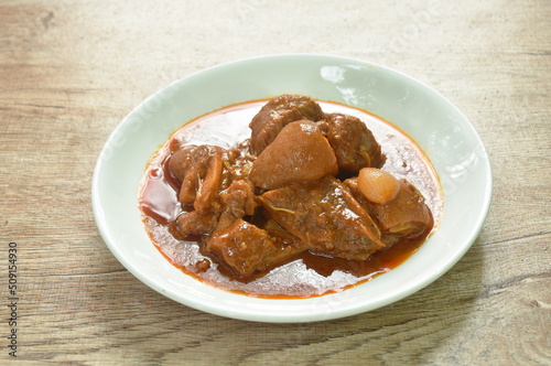 boiled spicy pork belly in curry soup or Hang leh Thai northern style food on plate