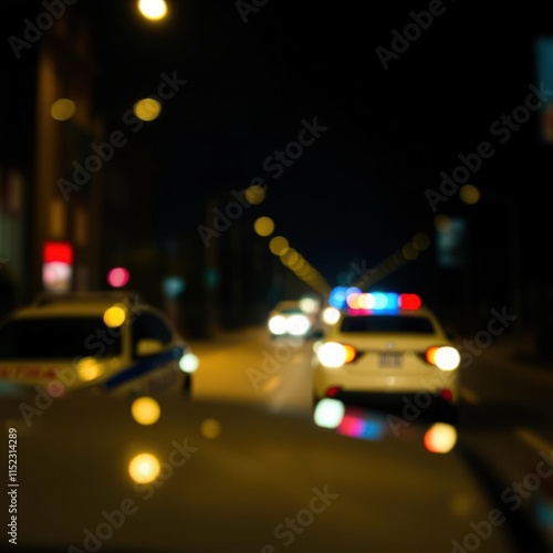 bokeh blue of Blurred view of police cars on street at night abstract bokeh light background bright emotional harmonious vignette