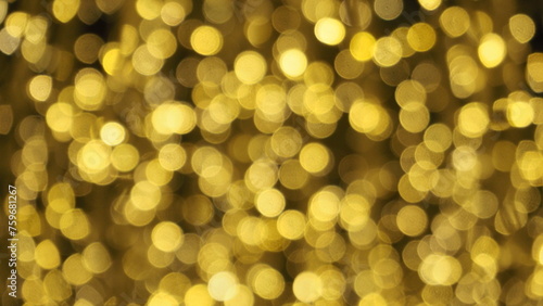 Bokeh images circle bubbles shape yellow color on black background.