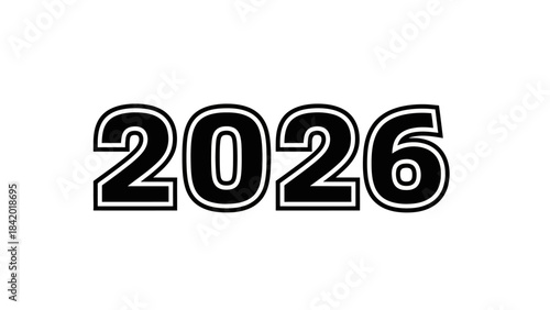 Bold 2026 year graphic with shadow on white background for visuals