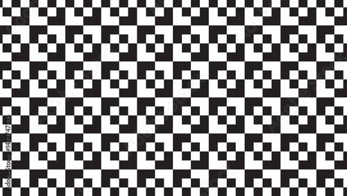 Bold black and white geometric pattern featuring pixel-inspired symmetry and minimalism. Perfect for digital backgrounds, modern textiles and abstract art projects.