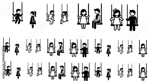Bold Black and White Playground Swing Vector Icons of a Boy and Girl – Minimalist Outdoor Romantic Silhouette Design