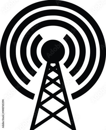 Bold Black And White Radio Tower. Vector Illustration Isolated On White