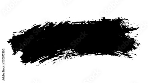 Bold Black Brushstroke Grunge Rectangle, Rough black brushstroke in a rectangular shape on white background, ideal for grunge design, abstract art, or creative layouts.