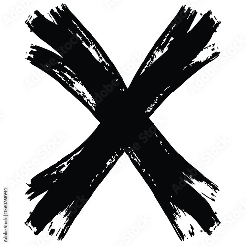 Bold black brushstroke x shape with artistic texture on white background