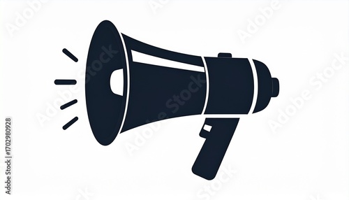 Bold black megaphone icon with radiating sound waves, symbolizing public announcement, urgent communication, marketing, and drawing attention.