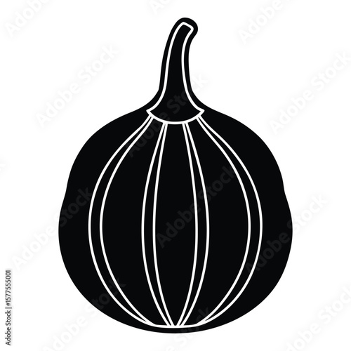 Bold black silhouette illustration of a stuffed acorn squash perfect for autumn harvest and thanksgiving culinary themes