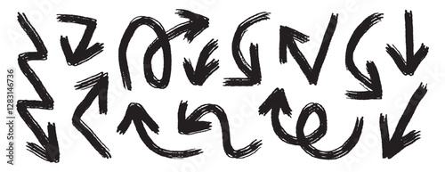 bold brush arrows set. marker hand drawn arrows collection, doodle thick arrows different directions.