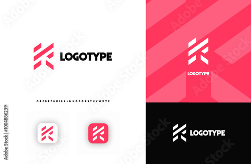 Bold diagonal stripes creating geometric shapes letter R logo for technology, finance, banking, cryptocurrency, corporate branding, architecture, construction, real estate. Vector illustration