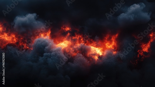 Bold flames and thick smoke rising on a dark background, creating an intense scene with ample copy space for messaging