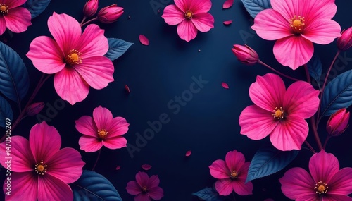 Bold fuchsia floral pattern, large blossoms on dark background , garden, blossom, print