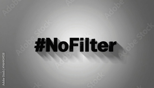 Bold hashtag “#NoFilter” in clean 3D font, subtle spotlight effect, black to gray gradient background, digital truth campaign theme