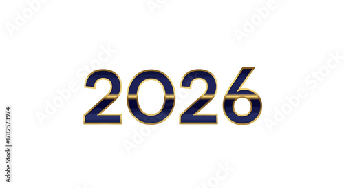 Bold, modern number 2026 with metallic gold stripe and dark blue outline