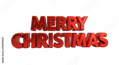 Bold red 3d text saying merry christmas with a glossy texture isolated on transparent background