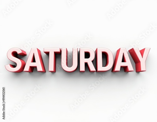 Bold red and white text spelling Saturday on a white background.
