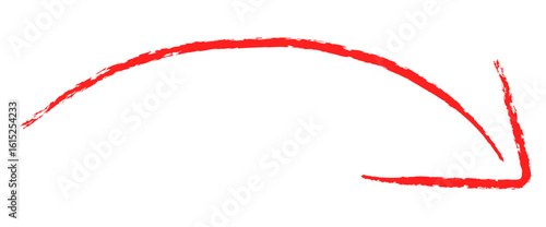 Bold red brush stroke arrow curves downward indicating direction or trend progression, perfect for highlighting data or changes