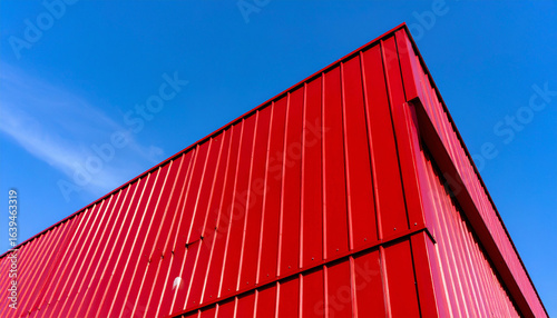 Bold Red Metal Building Against Clear Blue Sky