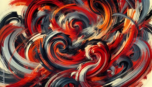 Bold red, orange, and black brushstrokes creating swirling organic patterns in a chaotic composition, background and wallpaper