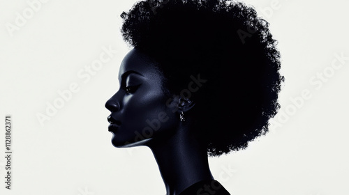 Bold silhouette of a woman's profile on white, showcasing strong artistic expression