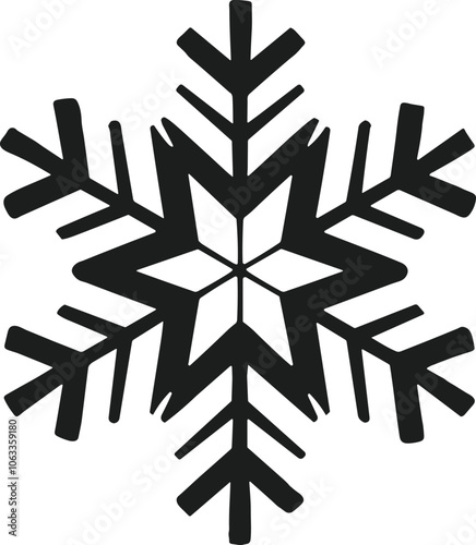 Bold Snowflake Vector Silhouette - Symmetrical Winter Holiday Icon