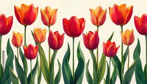Bold stylized tulips arranged in a square repeating tile , square, pattern