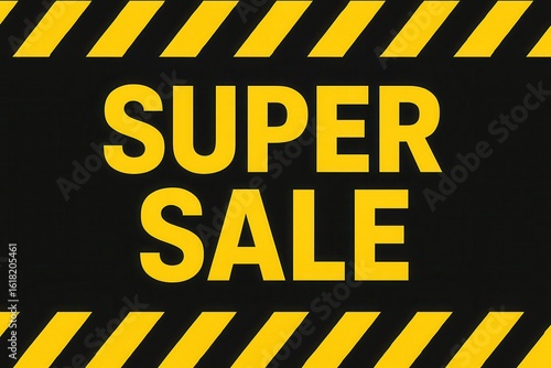 Bold yellow text on a black background with diagonal striped borders announces a "Super Sale," ideal for promotional materials and advertising purposes.