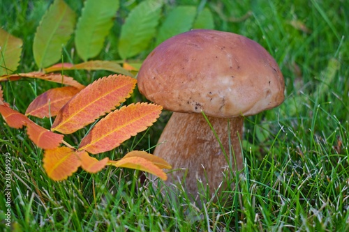 Boletus edulis, edible mushroom in forest. Porcini mushroom healthy and delicates food