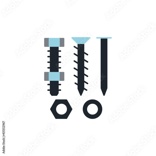 Bolt, nail, nut, rivet, screw icon in color icon, isolated on white background