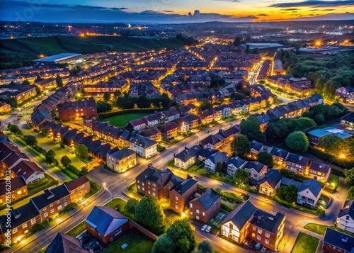 Bolton Housing Estate Aerial Night Photography - Low Light Drone Shot